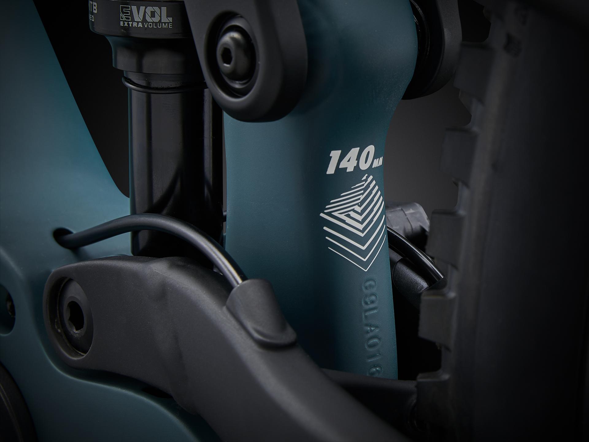 Die bewährte Single-Pivot-FlexPoint-Federung bietet 140 mm sensiblen, aktiven Hinterbau